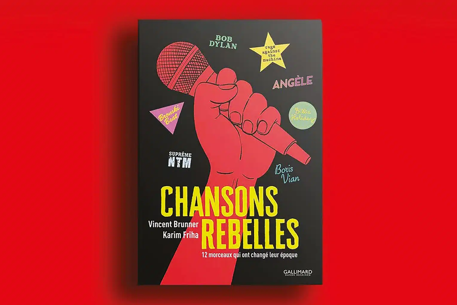 Vincent Brunner, journaliste aux Inrocks, et Karim Friha, dessinateur, racontent en bande dessinée l’histoire de douze morceaux issus de tous les genres musicaux et devenus des emblèmes contestataires. »